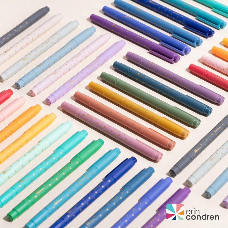 Elevate your planning experience with Erin Condren's premium pens and markers, designed to complement your Erin Condren planners and notebooks. Each pen glides smoothly across the page, offering vibrant, non-bleeding ink for crisp notes and creative flair. Whether you’re color-coding your schedule or jotting down quick reminders, our pens and markers ensure every detail stands out—without smudging or ghosting.