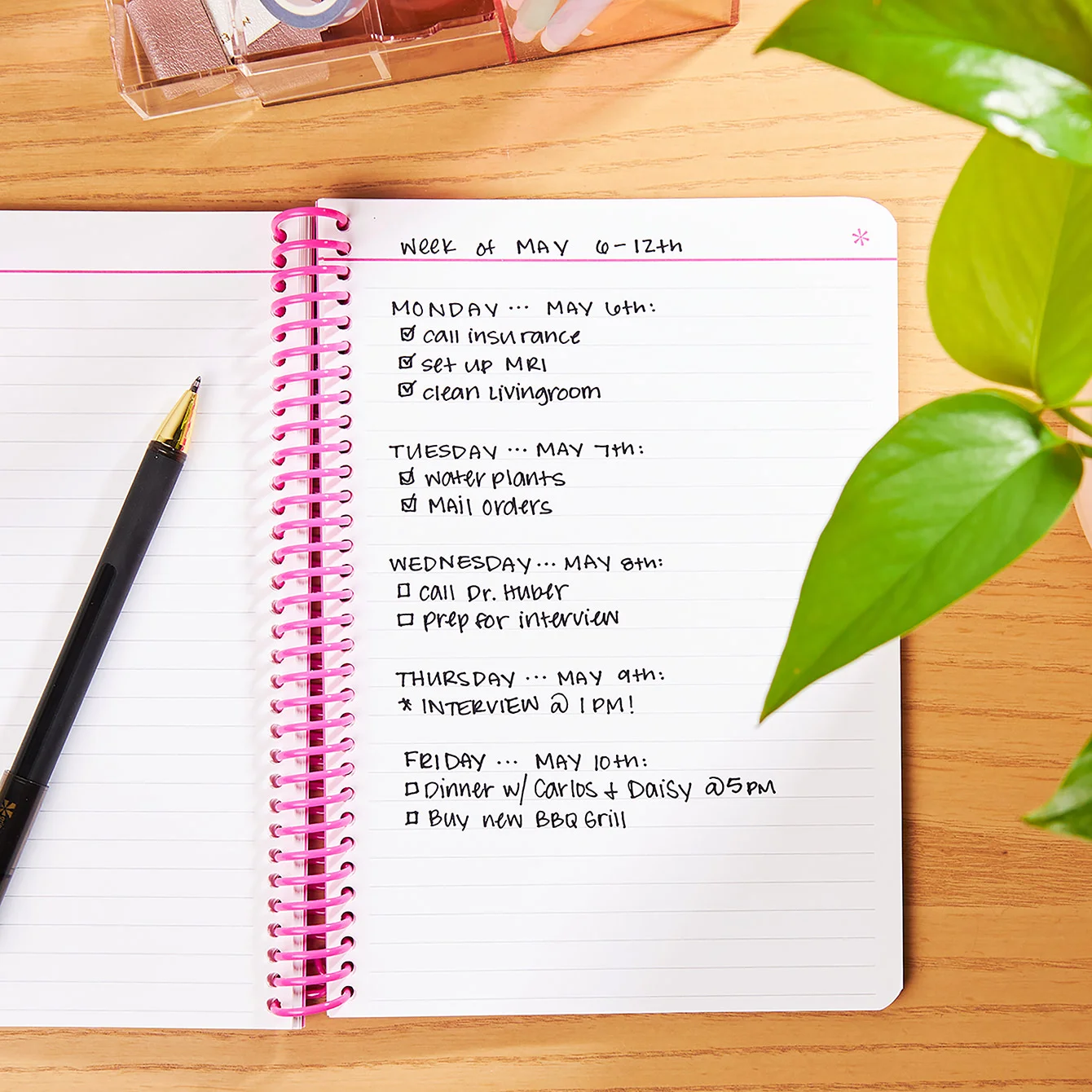 With its spiral binding and vibrant color-blocking, this notebook strikes the perfect balance between practicality and style, offering you the ideal space to jot down your plans, projects, and everything else in between, as well as being perfectly sized for conveniently carrying anywhere.
