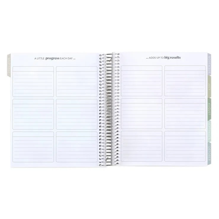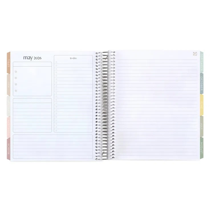 Coiled by hand with high-quality materials, including a durable spiral, sturdy covers (which are also wet-erase), and thick 80-pound text weight paper (resists ink bleeding), this planner is truly made to last and infuse more joy and inspiration into each day.